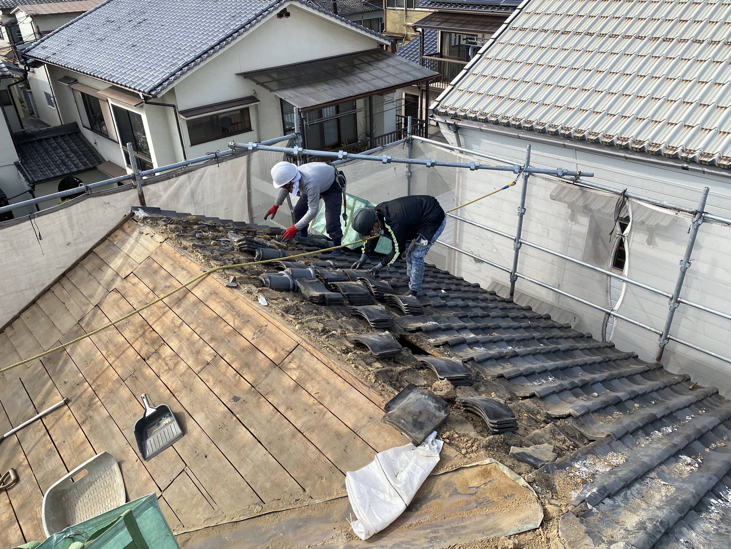 屋根瓦撤去工事①
