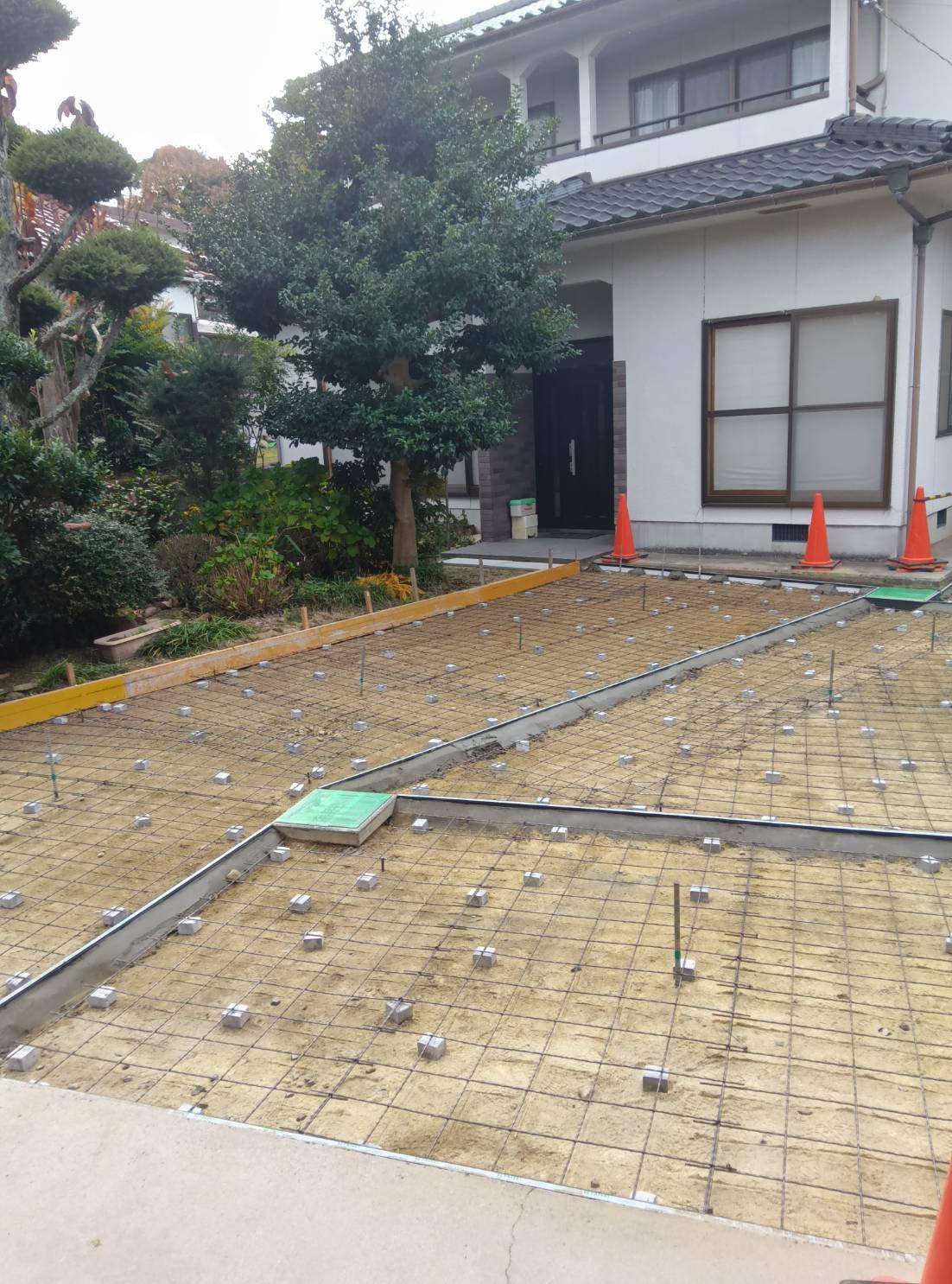 打設前にしっかりと枠を作り準備をし、取り掛かりました。