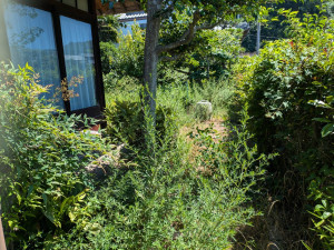 お庭の草刈りを行いました